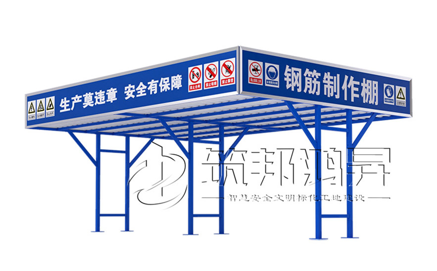 鋼筋加工棚GP1002,采用國標鋼材制作,雙層防砸結構,穩固耐用。拼裝式設計,快速組裝,安裝快捷,可重復使用,降低成本。