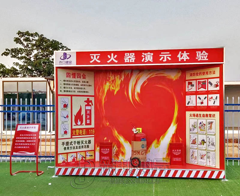 此次合作的工地安全體驗區(qū)建設(shè)包括了班前講評臺、爬梯演示體驗、洞口墜落體驗、消防器材柜、滅火器演示體驗等。